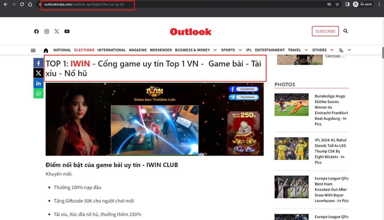 Outlookindia.com là trang báo lớn của Ấn Độ với hơn 4,5 Triệu người xem mỗi tháng. Theo trang này, IWIN được bình chọn là Cổng game bài uy tín Top 1 VN – Trong các mảng game bài, tài xỉu và nổ hũ