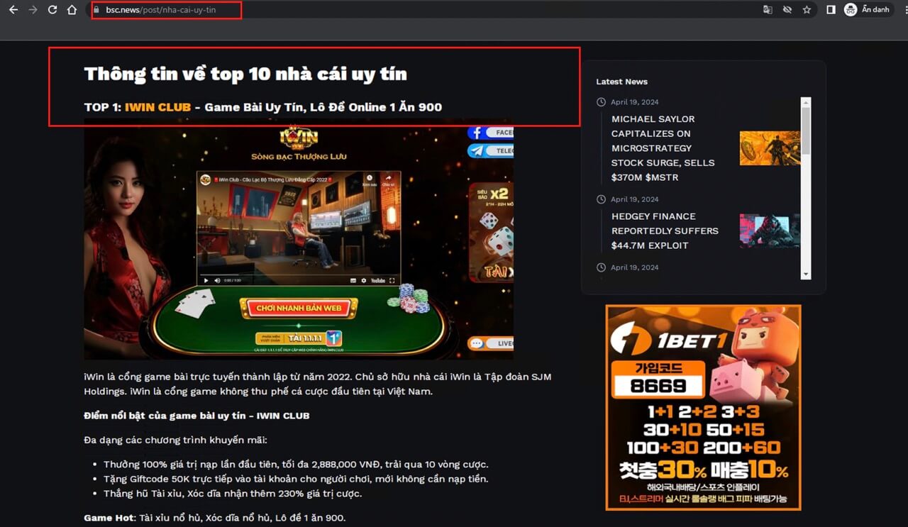 BSC.NEWS là trang tin tức về tiền điện tử và các sàn cá cược nổi tiếng trên thế giới với hơn 2,6 triệu người theo dõi. Trang này cũng nhận định IWIN là top1 trong các game bài uy tín và có cược lô đề online 1 ăn 900 uy tín.