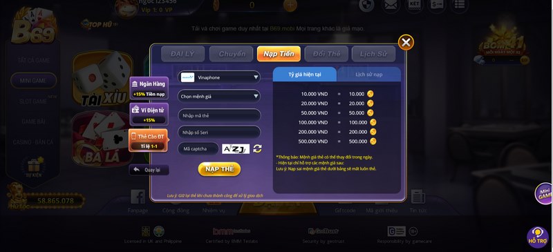 Cách nạp tiền vào cổng game B69