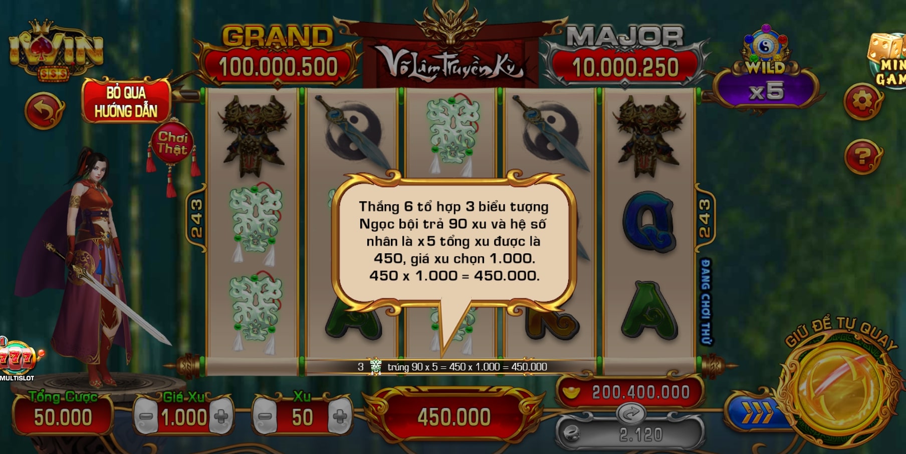 Slot Võ Lâm Truyền Kỳ là game slot có 243 cách thắng. Kết quả được tính theo các biểu tượng cùng loại liền kề từ trái qua phải.