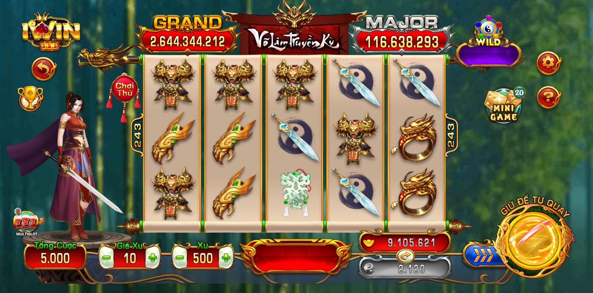 Game nổ hũ Võ Lâm Truyền Ky iWin Club thuộc dòng game 243 cách thắng. Thể loại slot này rất gây cuốn vì hầu như lượt quay nào người chơi cũng có thưởng, và giá trị lớn nhỏ phụ thuộc vào tổ hợp xuất hiện. Hơn nữa, ngoài “Hũ lớn” Game nổ hũ Võ Lâm Truyền Kỳ tại iWin còn có 1 “hũ phụ” dễ nổ hơn để tăng khả năng trúng thưởng cho người chơi. Cùng tìm hiểu kỹ hơn về quy luật nổ hũ của trò này dưới đây nhé!