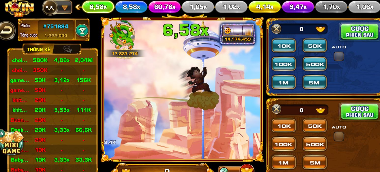 Songoku đu đỉnh là trò chơi đang được nhiều anh em game thủ chơi liên tục. Nhiều người còn đùa rằng kể từ lúc biết trò chơi này tại game bài iWin Club họ chẳng chơi những trò khác nữa. Vậy tựa game này là gì mà thu hút nhiều người đến như thế? Phương thức đặt cược của trò chơi này như thế nào? Có cần yêu cầu tiền vốn để có thể tham gia trò chơi này hay không? Những mẹo chơi dễ thắng của tựa game này là gì?…